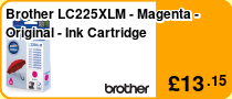 Brother LC-225XLY. Printing colours: Yellow, Page yield: 1200 pages, Page yield footnote: ISO / IEC 24711. Package type: Blister