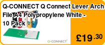 Q Connect Polypropylene Lever Arch Files. Smart, durable coloured lever arch files with finger pull for easy retrieval and large label area on the spine for quick identification. Perfect for colour co-ordinated filing systems. Size: A4. Colour - Green. |