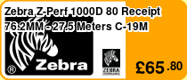 Zebra Z-Perf 1000D 80 Receipt 101.6MM - 24.1 Meters C-19